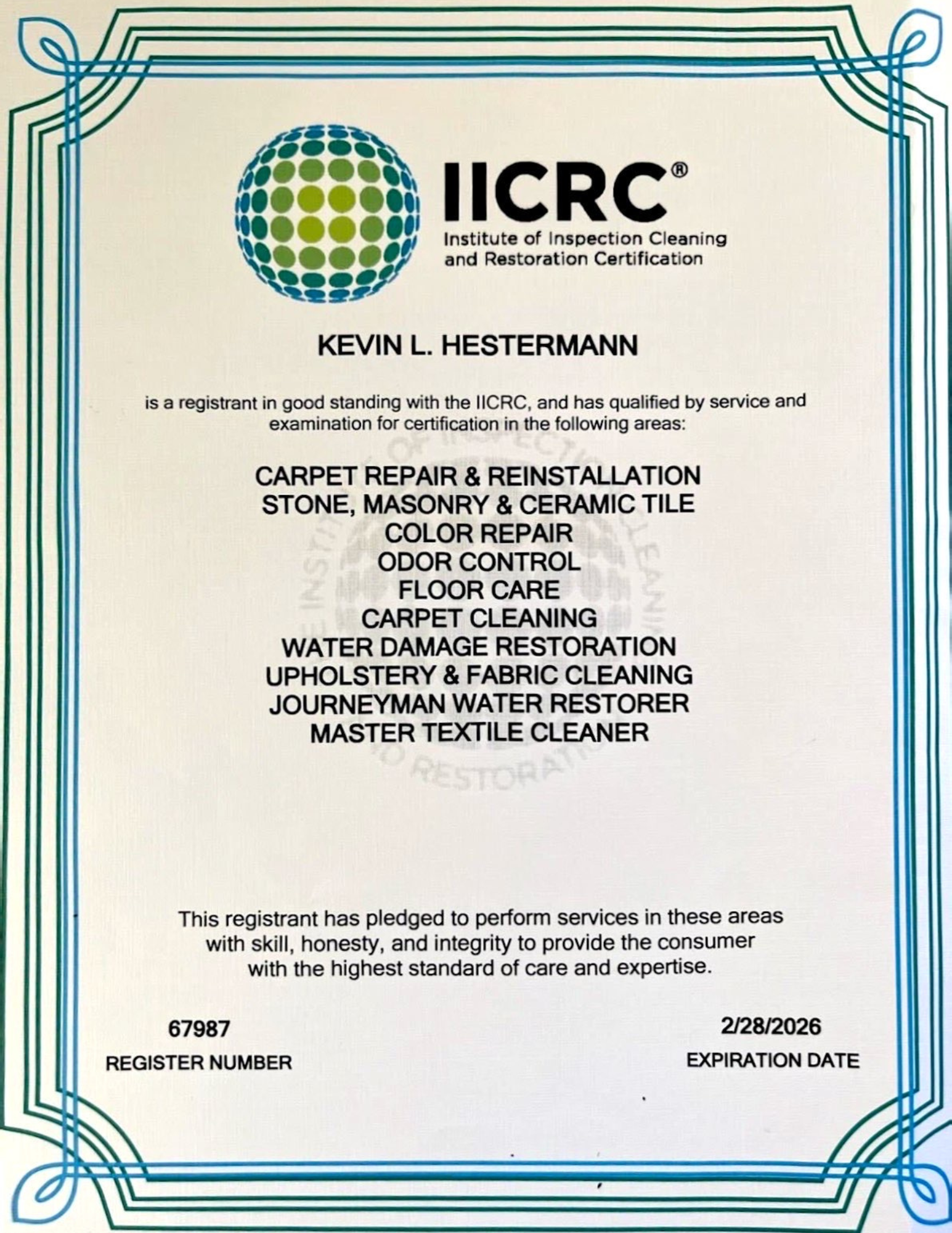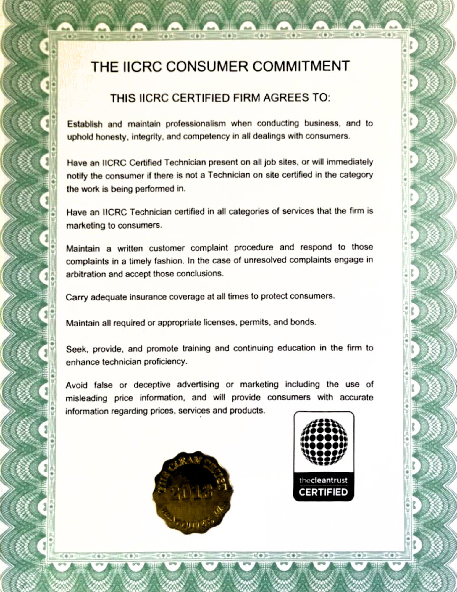 Our IICRC credentials are proof of our investment in delivering safer, cleaner, and longer-lasting results for your home or business.
